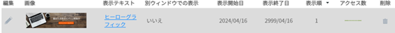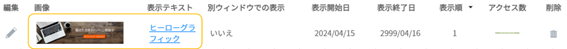 ・一覧表示からリンク先URL列が削除され、表示テキスト、画像がリンク化されました。